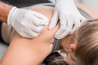 Mit der Behandlungsmethode Dry Needling können punktuelle Muskelverhärtungen, sogenannte Triggerpunkte behandelt werden. Der sterile Nadelstich löst eine schnelle und unwillkürliche Zuckung der Muskelfasern aus, welche die betroffene Stelle entspannt und sofortige Linderung erzielen kann.