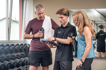 Unsere Fitnessinstruktor:innen sind regelmässig mit unseren Mitgliedern im Kontakt und stellen eine durchgehende Überwachung der Trainingsfläche sicher.